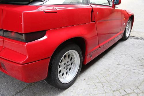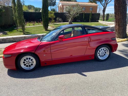 HISTORIA: Presentado en el Salón del Automóvil de Ginebra de 1989 como ES-30 o «Experimental Sportscar 3.0 litre», el SZ (Sprint Zagato) fue producido por Alfa Romeo y Zagato en colaboración, construyéndose entre 1989 y 1991. Este SZ es el número 235 de sólo 1.036 ejemplares producidos. Esta unidad fue originalmente vendida en Inglaterra, aunque monta de origen el volante al lado izquierdo. Fue importado a España hace menos de 10 años, y su propietario lo ha mantenido en estado estético original, habiendo realizado una revisión completa de la mecánica.