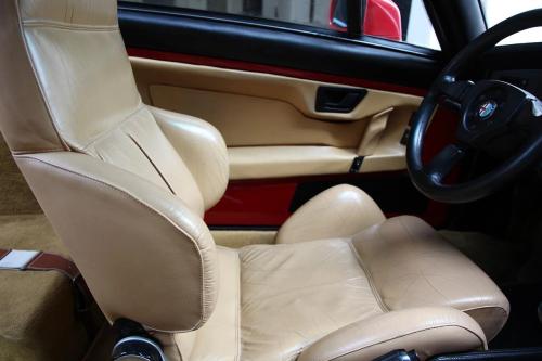 CARROCERÍA: El diseñador Zagato, dejó su toque particular y personal por todo el vehículo, especialmente en su trío de faros instalados a cada lado. Todos los SZ estaban acabados en el icónico tono Rosso Alfa con techo Grigio Scuro. Esta unidad se encuentra en estado original y no ha sido restaurado. El principal defecto es un óxido que se encuentra en la parte baja de la luneta trasera, e la parte que conecta con la tapa del maletero.