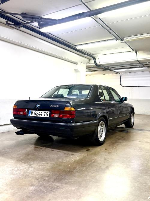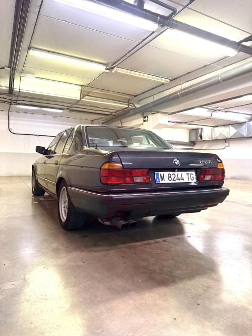 HISTORIA: Este BMW pertenece a la exclusiva serie 7, símbolo de sofisticación, tecnología y lujo en la historia de la marca bávara. Aunque sus únicas diferencias externas con los 6 en línea 730 de 197 cv y 735 de 220 se referían a sus llantas, a sus dos “riñones” frontales más gruesos, al pliegue del capó más ancho y a su escape de sección rectangular, gracias a su motor V12 sus prestaciones eran las de un deportivo en versión lujosa (27,3 segundos para hacer el km desde parado), situándolo por encima de un Porsche 944, un Alpine V6 o un Mercedes 190 2.3-16v.