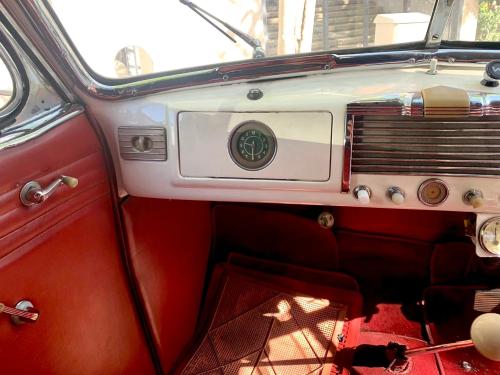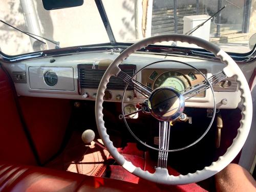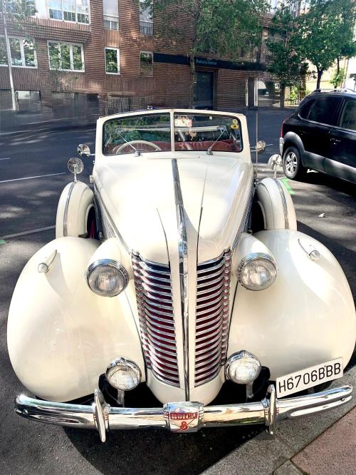 MECÁNICA: Está en muy buen estado, su propietario lo utilizaba con mucha frecuencia para realizar viajes largos. Su potente motor de 8 cilindros en línea y válvulas en cabeza permite cruceros superiores a los 100 km/h. Esta unidad en concreto monta una opción muy rara de la época: tiene dos carburadores, lo cual supone un importante aumento de la potencia con respecto a las unidades dotadas de un solo carburador. El coche lleva instaladas varias baterías de gel de 6 voltios en serie, y cuenta con electroventilador.