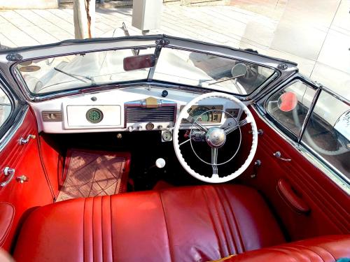 INTERIORES: Fueron restaurados y se encuentran en muy buen estado, la tapicería está realizada en un bonito cuero de color rojo. Cuenta con dos plazas supletorias en el «ahítepudras» trasero escamoteable.