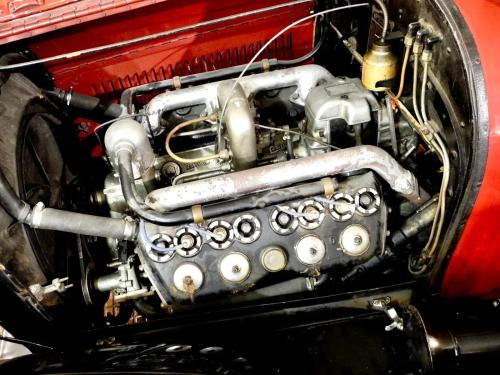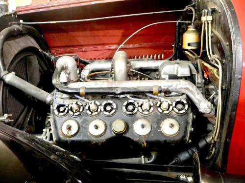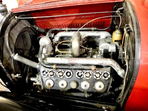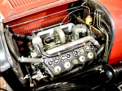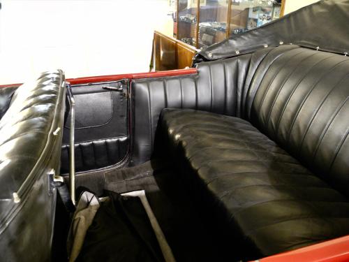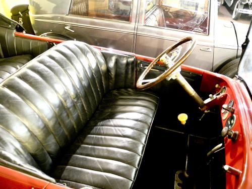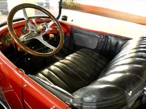CARROCERÍA: La carrocería está en muy buen estado. Fue totalmente restaurada hace años y actualmente presenta algo de pátina, pero sin defectos reseñables. Los colores son correctos y mantienen todas sus características originales. Se trata de un «phaeton» o «torpedo», es decir, el descapotable de 4 puertas capaz para 7 pasajeros, incluyendo los asientos plegables del compartimento trasero.