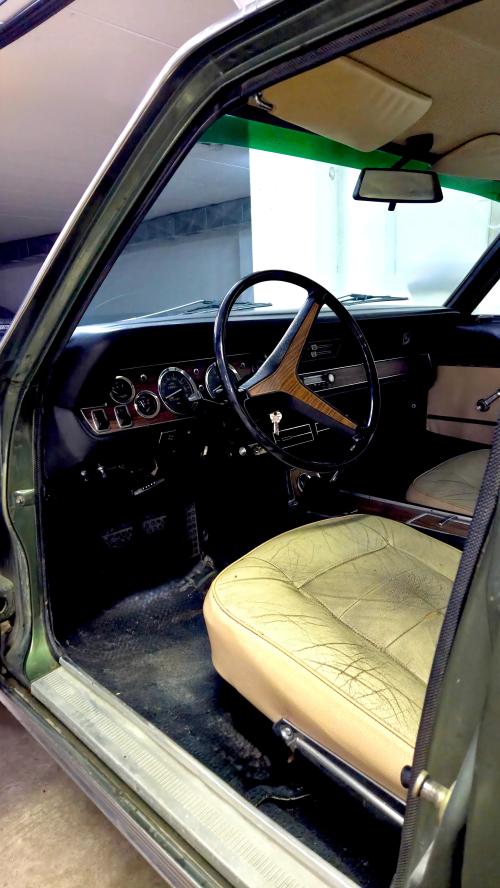 MECÁNICA: Conserva su motor original de gasolina de 6 cilindros y su cambio manual. Lleva varios años sin uso por carretera, aunque se ha arrancado periódicamente, mientras estaba estacionado sobre unos tacos. Necesitará una revisión mecánica completa.