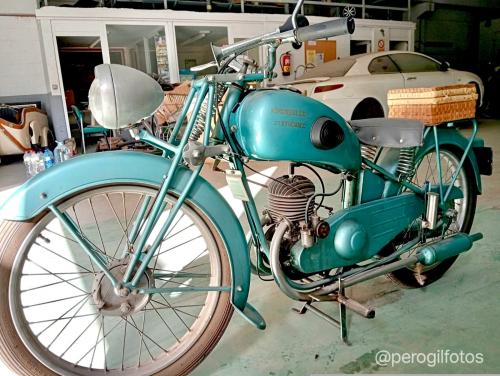 HISTORIA: Aunque el constructor de las Hirondelle (Golondrina) era la veterana compañía Manufacture Française d’Armes et Cycles, fundada en 1885 en Saint-Étienne, algunos modelos los producía bajo licencia y otros eran fabricados por terceros y luego comercializados bajo su propio sello MF o Manufrance. Fue la primera empresa francesa de venta por catálogo, con un catálogo anual que ofrecía una amplia gama de productos, desde armas cortas a bicicletas y máquinas de coser. Tras la Segunda Guerra Mundial, se introdujo en el mercado de la moto con relativo éxito. La Hirondelle Type C montaba un motor Nervor de 125 cc con doble salida de escape y encendido por volante magnético, capaz de entregar 4 CV de potencia y una velocidad punta de 70 km/h con un consumo de 2,5 l/100 km. Fabricada entre 1949 y 1952 era una moto rápida y económica que hoy suscita interés entre los aficionados a las clásicas por su curiosa historia y su rareza. Esta unidad fue correctamente restaurada tiempo atrás y está en excelente estado.