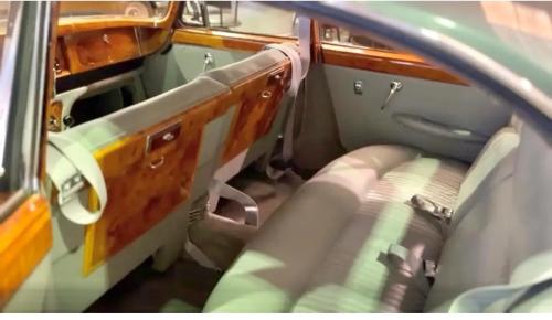 INTERIORES: Espectacular interior en cuero de color gris claro y madera de raíz, todo ello perfectamente restaurado. Tiene elevalunas eléctricos de origen y conserva incluso su radio de época.