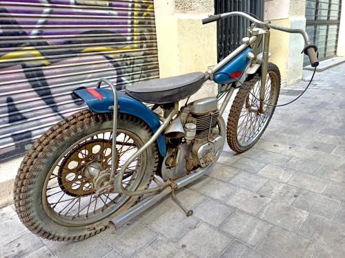 MECÁNICA. Motor: monocilíndrico cuatro tiempos. Cilindrada: 493 cc (85 x 86 mm). Transmisión: por cadena. Transmisión secundaria: directa, sin caja de cambios. Nº motor: 7925.