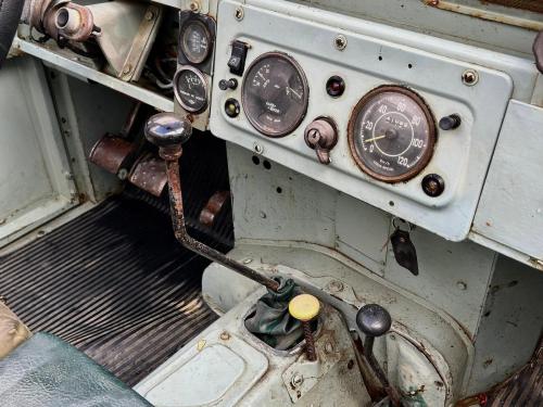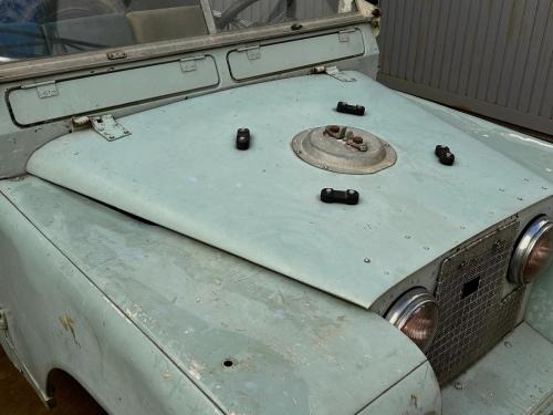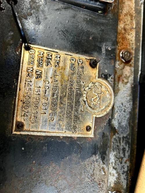 CARROCERÍA: Está en estado original, necesitada de una restauración completa, aunque los paneles originales de aluminio están en un estado razonable. Durante los años 70 u 80 se le añadieron faros delanteros suplementarios en las aletas, pero actualmente es muy sencillo devolverle su aspecto original, ya que existen varias empresas de recambios de Land Rover que venden los tabiques delanteros nuevos. Con el coche se incluyen un techo metálico completo y el portón trasero metálico, actualmente desmontados.