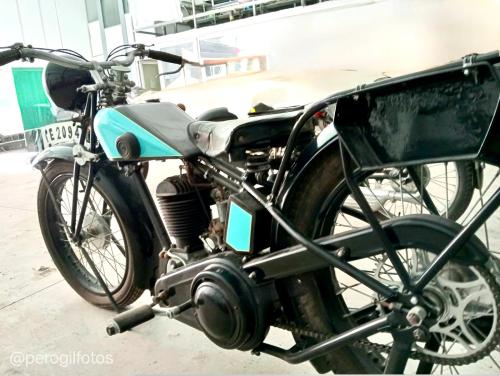 HISTORIA: Magnat Debon es uno de los constructores de motos históricos de Francia, fundada en 1893 por Joseph Magnat y Louis Debon en Lyon, primero para fabricar de bicicletas, e instalada más tarde en Grenoble. En 1902 empezó a producir motos con motores de 2 y 4 tiempos, y a partir de 1923 se convirtió en una submarca del gran conglomerado industrial Terrot. Ocupando el segmento inferior del mercado. Durante el periodo de entreguerras, el atractivo de las Magnat Debon radicaba su gama de modelos de turismo, idénticos a las Terrot de la temporada previa pero a un precio más asequible. Las máquinas con motor de vávlulas laterales del fabricante lionés, como esta EST 350, eran ligeras, económicas y extremadamente fiables. Esta Magnat Debon BST Standard comparte las características técnicas generales con su “hermana” Terrot HST. Tiene una potencia máxima de 9,3 CV a 4.300 rpm, un peso de 130 kg y una velocidad punta de 95 km/h. El ejemplar presentado muestra una restauración antigua pero solvente, se encuentra en excelente estado y listo para funcionar con un simple repaso mecánico.