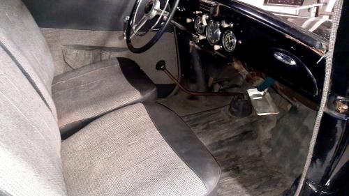 CARROCERÍA: En buen estado, pintada en su correcto color negro, fue restaurada hace unos años. Los cromados están en buen estado en general, con algunos defectos en el paragolpes delantero.