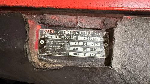HISTORIA: Esta unidad se corresponde con la última versión del mítico «Pagoda», es decir, el 280 SL con el motor de mayor cilindrada y potencia de todas las versiones. Fue originalmente vendido en 1969 en EE.UU, y allí permaneció hasta que hace unos 20 años fue importado a España. Sin embargo, no se llegó a matricular, por lo que desde entonces apenas ha tenido uso, a pesar de que el coche funciona. Está en general en estado original, y nunca ha sido restaurado en profundidad. Podría ser utilizado como está, o también podría ser una muy buena y sólida base para una restauración completa, lo cual, dado el alto valor actual de estos modelos, suele compensar la inversión.