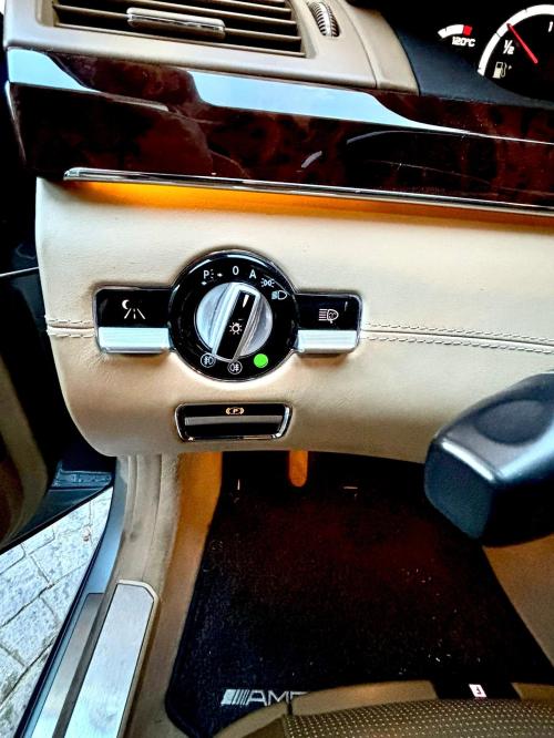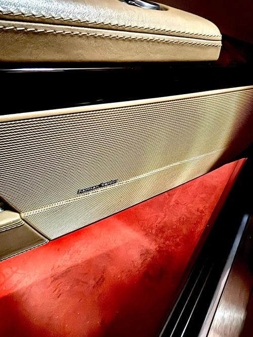INTERIORES: Muy bien conservado y con un sinfín de extras: sistema de sonido surround Burmester, molduras de madera de raíz de nogal oscuro, tapizado de cuero exclusivo napa, asientos traseros climatizados y con masaje, etc.