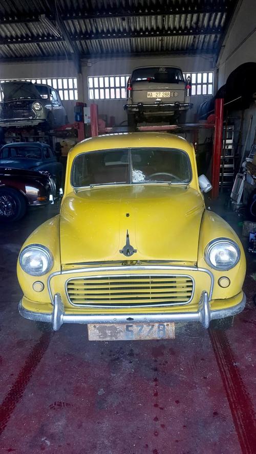 HISTORIA: Esta unidad es uno de los escasos Morris Minor que fueron originalmente vendidos en España durante los años 50. Ha permanecido toda su vida en Castilla y león, y aunque recibió una mano de pintura amarilla no original hace bastantes años, actualmente está necesitado de una restauración completa.