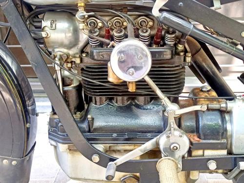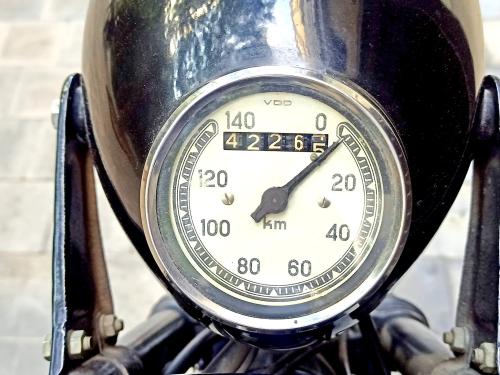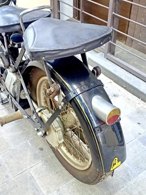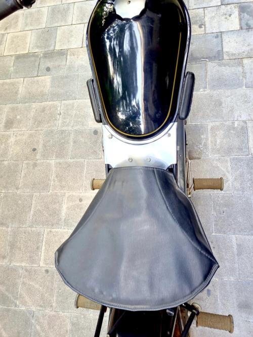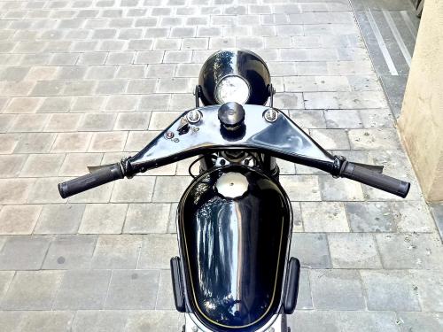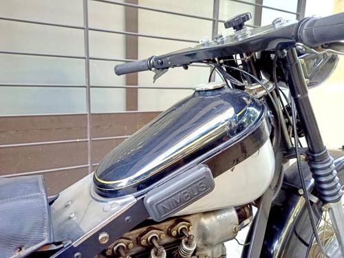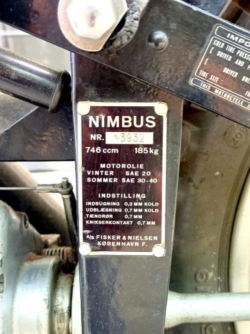 HISTORIA: La Nimbus es una máquina asombrosamente moderna para su época, y un caso curioso en la industria motociclista: fue diseñada y fabricada por una marca de aspiradoras. En su versión Model C estuvo construyéndose durante más de un cuarto de siglo, de 1934 a 1959, sin apenas cambios, y llegaría a ser la moto más vendida de Dinamarca. Con un motor de 4 cilindros en línea, árbol de levas en cabeza y transmisión por cardan, entre otros adelantos, rinde en torno a 20 CV alcanza los 120 km/h de velocidad punta, siendo sorprendentemente fácil de manejar. Se estima que hoy en día sobrevive la mitad de las Nimbus producidas -cuatro mil de ellas en su país de origen- y casi todas en condiciones de marcha. Este es uno de los 99 ejemplares que salieron de fábrica en 1958; fue restaurado hace ya tiempo y se conserva en bastante buen estado.