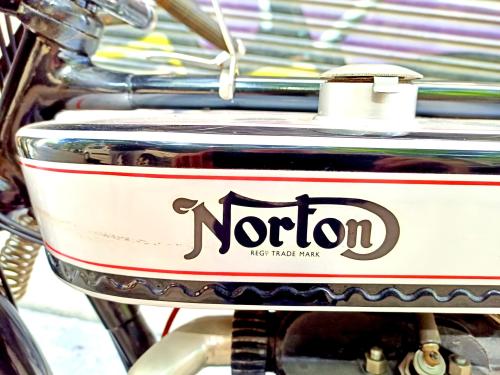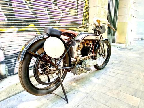 HISTORIA: En 1922 James Lansdowne Norton diseñó el primer motor de válvulas en cabeza de la marca, que adoptaría para la producción en serie en el Model 18, lanzado un año después y dotado de caja de cambios Sturmey-Archer de 3 velocidades. Esta moto se forjó enseguida una brillante reputación por su excelente rendimiento y elevada fiabilidad mecánica, estableciendo varios records de velocidad y resistencia, incluida una nueva marca de las 12 horas. El piloto Alec Benett venció el Senior TT de 1924 con la Model 18. En la edición siguiente, el barcelonés Ignacio Macaya se convertía en el primer corredor piloto español que conseguía terminar y clasificarse en esta dura prueba (15º en el Senior TT); lo hizo a los mandos de la máquina que subastamos hoy aquí. En 1926 mejoraría su resultado finalizando en el 11º puesto. Su Model 18 se ha conservado durante muchos años en una colección catalana, siendo utilizada con  regularidad en diversas manifestaciones de motos veteranas. Se trata de una pieza realmente excepcional por su historia, su palmarés deportivo y su admirable estado de preservación.
