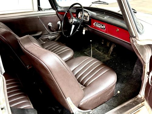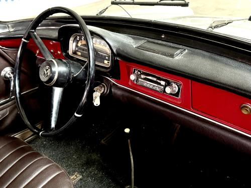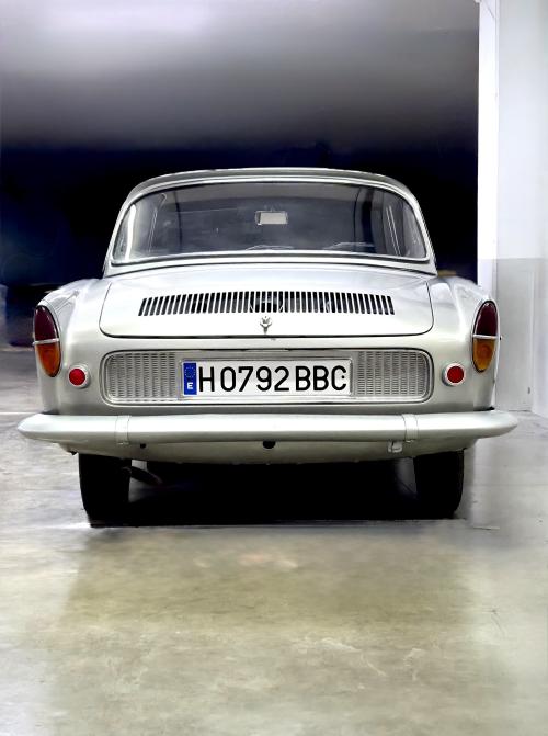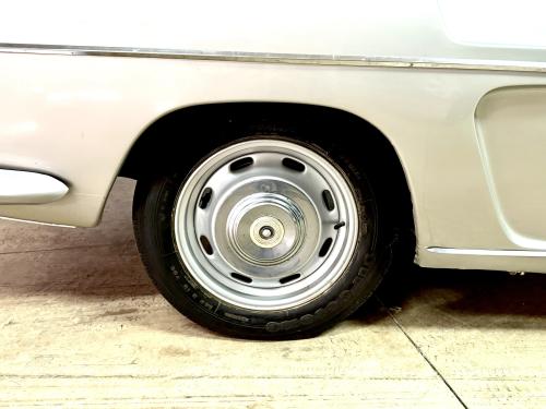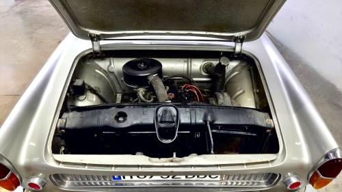 CARROCERÍA: En muy buen estado general, restaurado y pintado en uno de los colores que se ofrecían originalmente para este modelo. Las molduras y cromados están en buen estado, con algún defecto como los que se aprecian en el paragolpes trasero, que tendría que estar cromado. Dispone de techo duro desmontable, por lo que se convierte en descapotable. El color oscuro de la tapicería combina a la perfección con el tono de la carrocería.