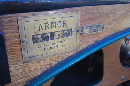 CARROCERÍA: Esta unidad monta una carrocería especial de corte deportivo, con placas de la fábrica parisina «Armor», que en las primeras décadas del Siglo XX era fabricante de bicicletas y motocicletas. Está en buen estado general, con algo de pátina, sobre todo en la pintura negra de las aletas.