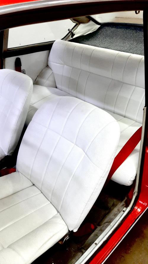 INTERIORES: Fue restaurado y retapizado en eskay blanco, por lo que se encuentra en bastante buen estado. Una de las dos trampillas de aireación que faltan en las fotografías, ya se encuentra colocada.