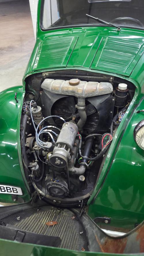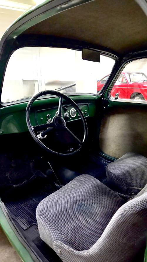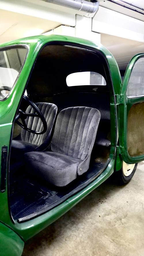 HISTORIA: Se trata de un Simca Cinq, es decir, el Fiat 500 Topolino que se fabricaba bajo licencia en Francia desde 1936, sin apenas modificaciones con respecto al modelo italiano. Pasó toda su vida en Francia, donde fue restaurado, hasta que en el años 2002 fue importado a España. Ha estado sin uso por carretera durante los últimos años, pues estaba estacionado sobre unos tacos, expuesto en un museo.