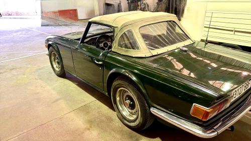 HISTORIA: Tras haber dependido exclusivamente de motores de cuatro cilindros durante la década y media anterior, Triumph optó por los seis cilindros para prolongar la vida útil y mejorar el rendimiento de la aclamada serie TR.  Rediseñado en 1969 por Karmann de Osnabrück, el TR6 lucía un frontal ancho y una zaga cuadrada. Bajo la carrocería, el chasis se mantuvo prácticamente igual que el de su antecesor TR4A con suspensión trasera independiente, mientras que el motor de 2.5 litros con inyección de combustible permaneció sin cambios. La manejabilidad mejoró con respecto a la del TR5 gracias a unas ruedas más anchas y una barra estabilizadora delantera. Con una velocidad máxima de 193 km/h y una aceleración acorde, los TR de seis cilindros son, sin duda, los Triumph más emocionantes jamás fabricados, y siguen gozando de una entusiasta legión de seguidores en todo el mundo, además de una excelente red de proveedores de repuestos y servicios.