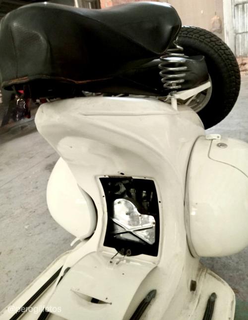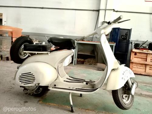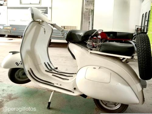 HISTORIA: En 1953 se empieza a producir en España la Vespa bajo licencia de su creador, Enrico Piaggio, en la fábrica que la compañía Motovespa SA acababa de edificar en la calle Julián Camarillo de Madrid. Cinco años más tarde aparece en el mercado esta versión, la 125 N, disponible en dos colores, gris y beige, y ya dotada de faro delantero integrado en el manillar, que también oculta todos los cables y mandos de accionamiento. Es la  primera Vespa cuya estructura básica -el monocasco que conforma su chasis y carrocería- está compuesta por dos semicarcasas unidas de chapa de acero. Este ejemplar fue restaurado hace algunos años y solo va a necesitar una simple puesta a punto para volver a funcionar. La Vespa es un icono de la historia del motor y desde hace algún tiempo su valor como vehículo de colección no ha dejado de aumentar.