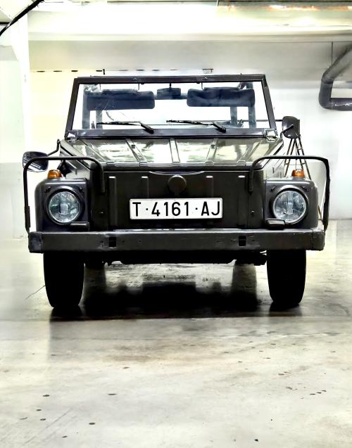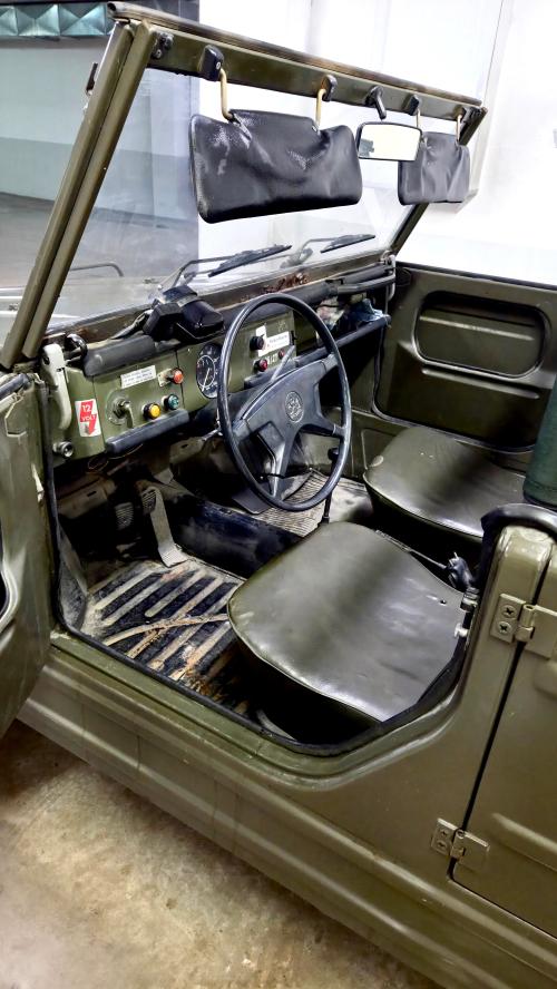 HISTORIA: Este vehículo debió pertenecer originalmente al ejército o policía alemana, dado que tiene varios carteles indicadores en alemán que así lo indica en su interior. Fue fabricado en 1974, y llegó a España décadas después, pues según su documentación fue matriculado en España en 1993. Ha permanecido hasta ahora sin restaurar y conservado con un alto grado de originalidad, sin modificaciones. Ha estado sin uso por carretera durante los últimos años, pues estaba estacionado en un museo y sobre unos tacos.