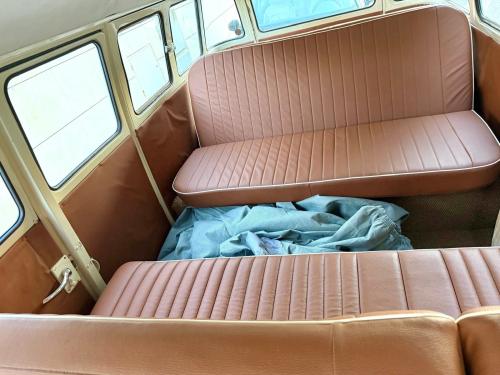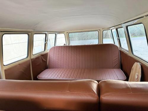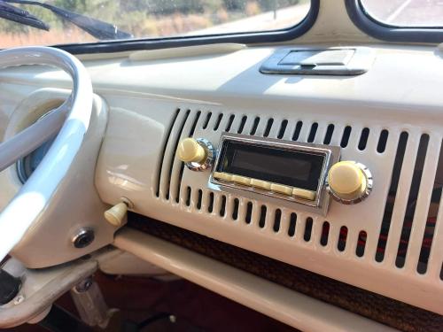 INTERIORES: Restaurados, en muy buen estado. Bonita tapicería nueva en tono marrón. Con radio moderna de estilo retro.